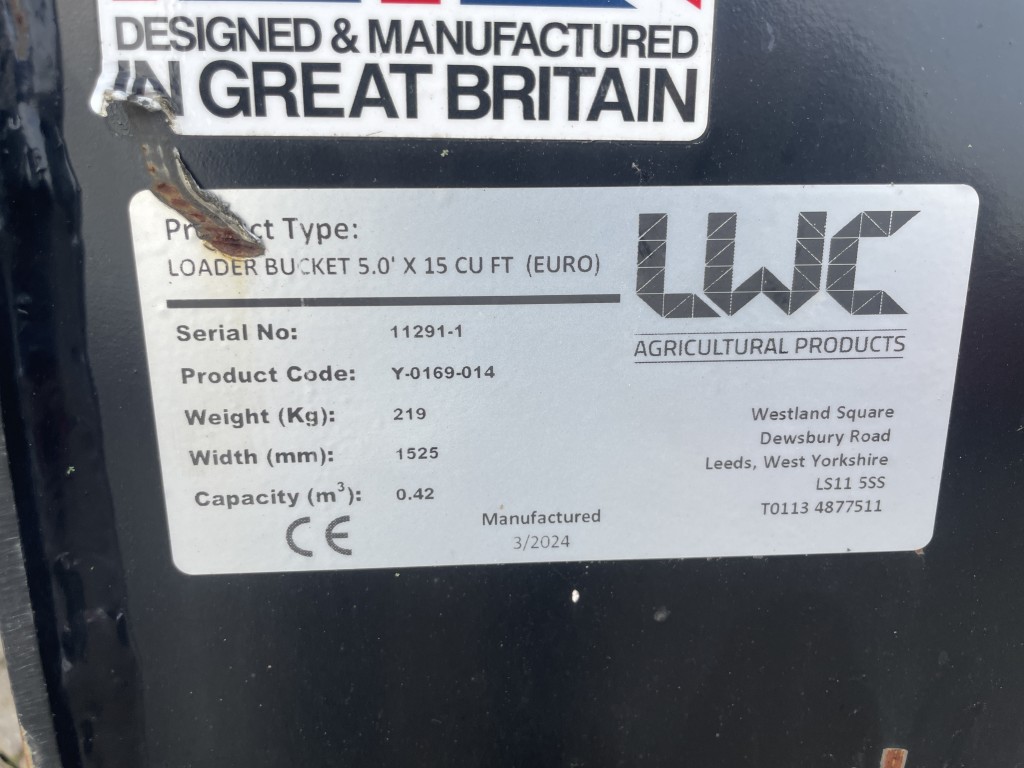 LWC rehandling bucket Euro 8 brackets Very low use 1.5 meter wide 5 foot