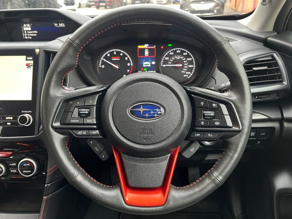 Front Centre Armrest, Heated Door Mirrors, Heated Front Seats, Satellite Navigation System, Cloth Upholstery, Service Interval Indicator, Luggage Hooks, Centre Console Storage Box, Three 3 Point Rear Seatbelts, Speed Sensitive Power Steering, Front Map Lights, Illuminated Driver/passenger Vanity Mirrors, Steering Column Support Beam, Windscreen Wiper De-icer, Third Brake Light, Heated Steering Wheel, Cupholders - 2 In Rear Centre Armrest, Overhead Console, Auto Dimming Rear View Mirror, Rear Seat Heater Ducts, Deadlocks, SVDC - Subaru Vehicle Dynamics Control, Intermittent Front And Rear Wash/wipe, Hill Descent Control, Door Pockets With Bottle Holder, Front Head Restraints, Aluminium Pedals, Luggage Area Lamp, Roof Spoiler, Heated Rear Window With Timer, Power Tailgate, 4 Channel ABS, Remote Control Central Locking, EBD + Brake Assist, Tilt/telescopic Adjustable Steering Wheel, Seatbelt Indicator Light, Seat Back Pockets, Electronic Parking Brake, Hill Start Assist, Daytime Running Lights, Defroster Vents For Front And Side Windows, 2 Cupholders In Front Centre Console, Paddle Shift Controls, Tyre Repair Kit, Reversing Camera, 8 Way Power Adjust Front Passenger Seat, Height Adjustable Front Seatbelts With Pre-tensioners And Load Limiters, 60/40 Split Folding Rear Seat, Pop-up Headlight Washers, DAB Digital Radio, Steering Wheel Mounted Audio/cruise Controls, Driver Monitoring System, Speed Limiter, Keyless Smart Entry With Push Button Start, Driver Seat Memory Function
