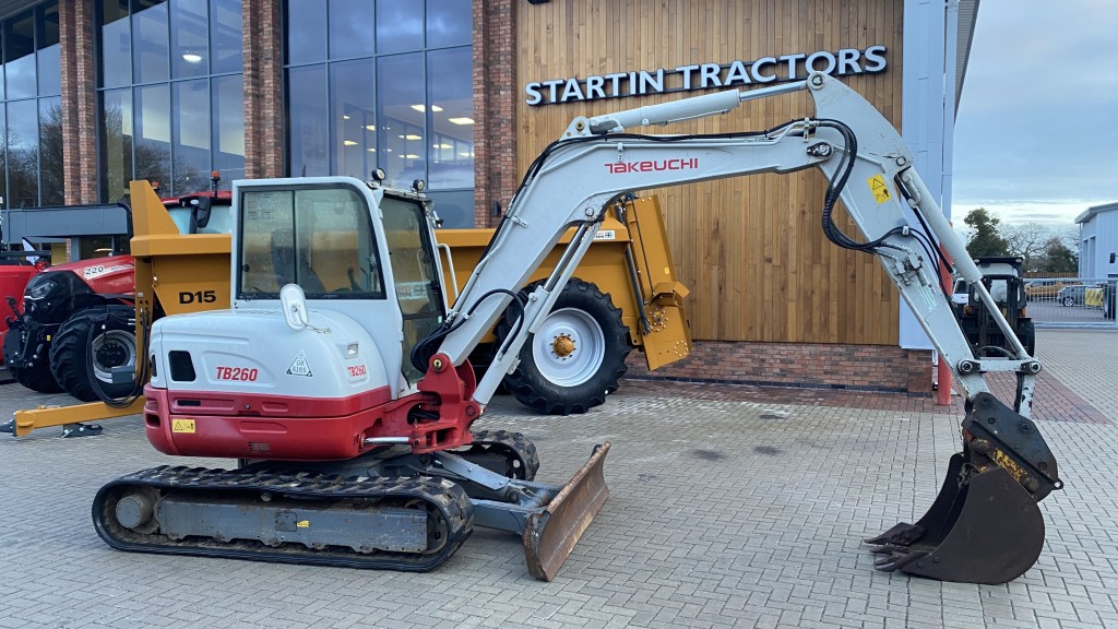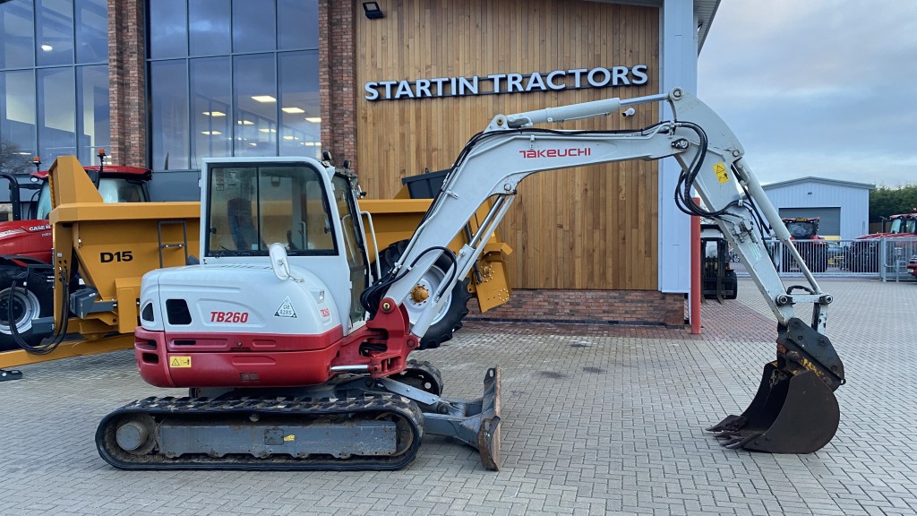 Takeuchi TB260 C/W Blade, Hammer line Quick hitch 2' bucket