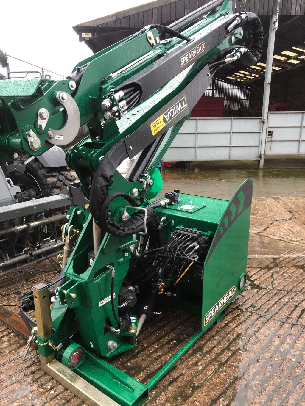 6.4 mete reach Parallel arm geometry 3 point linkage mounted with spearhead stabiliser arms Electric Mini pilot controls 1.5 meter MP1 head with hydraulic roller Direct drive motor Front flaps Tee flails Boom pipe guards Power slew 65 horse power hydraulic pump Road lights Oil cooler